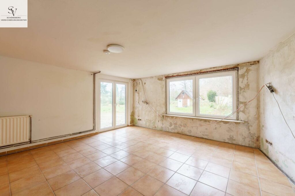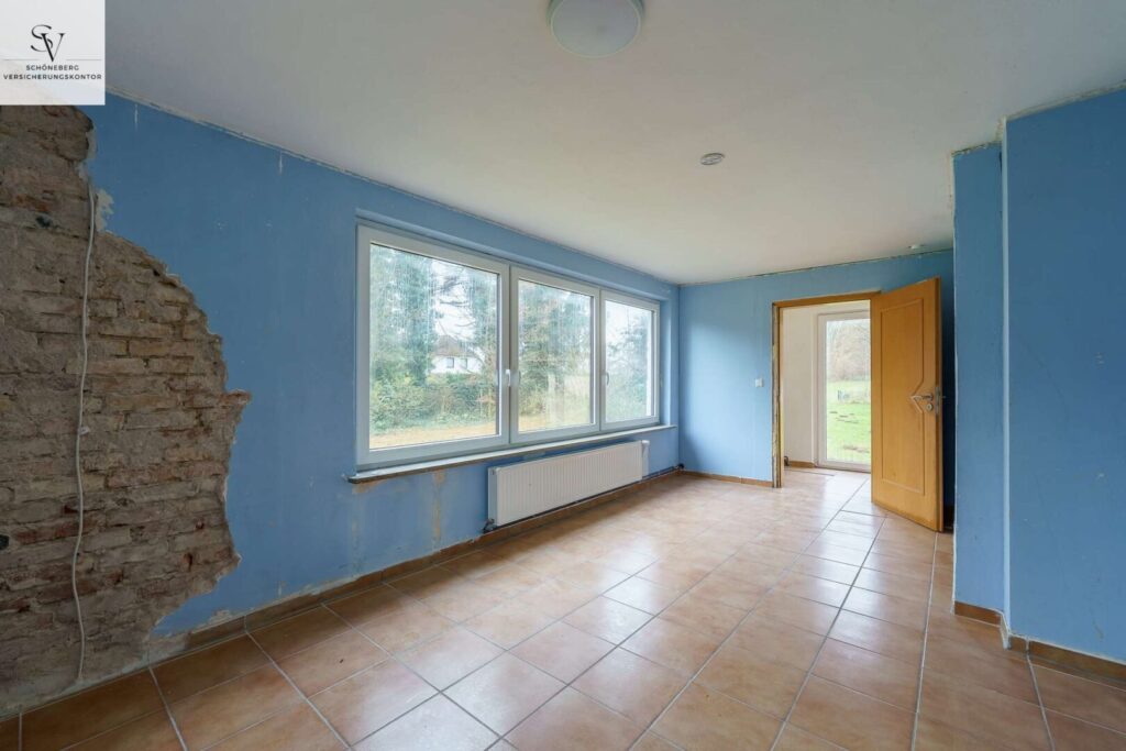 Der vorhandene Gebäudebestand umfasst ein klassisches Zweifamilienhaus, das in der Vergangenheit vollständig vermietet war. Aus dieser Nutzung resultiert ein renovierungsbedürftiger Allgemeinzustand, der jedoch zugleich einen entscheidenden Vorteil bietet: Gestaltungsfreiheit ohne gestalterische Altlasten.