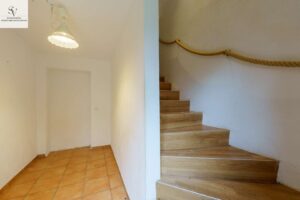 Damit ergibt sich eine Zimmeranzahl von insgesamt 5 vollwertigen Wohn- und Schlafräumen, zuzüglich Küchen, Bädern und Nebenflächen – eine Konstellation, die sowohl für Mehrgenerationenwohnen, Wohnen und Arbeiten unter einem Dach als auch für eine klare Trennung zweier Wohneinheiten hervorragend geeignet ist.